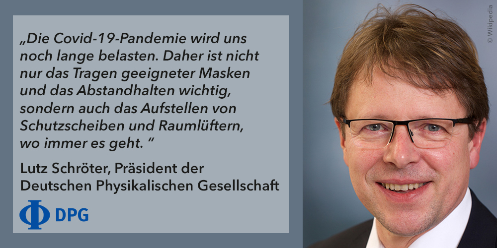 Das Tragen medizinischer Masken in der Schule und am Arbeitsplatz wird kontrovers diskutiert. Ebenso wie die Vor- und Nachteile der Fensterlüftung in Innenräumen. Durch den kombinierten Einsatz technischer Infektionsschutz-Lösungen sei nicht nur eine Verminderung der Corona-Ansteckungsgefahr in Innenräumen möglich, sondern selbst der Verzicht auf das Tragen von Masken. Die Deutsche Physikalische Gesellschaft empfiehlt daher eine konsequente Förderung von Luft- und Filtertechnik.