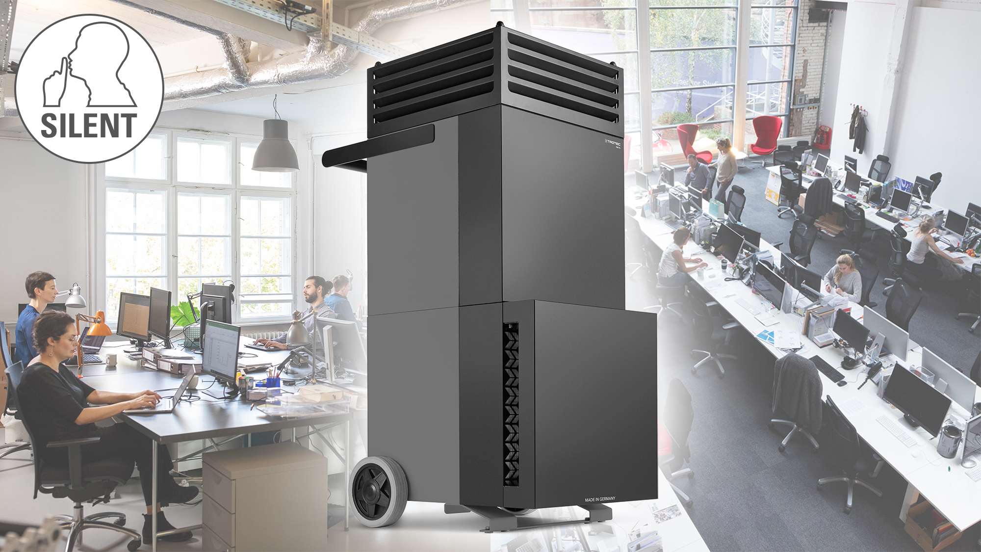 3. Der Luftreiniger muss hinreichend geräuscharm sein, damit er im Betrieb nicht stört. Denn stört der Lärm, dann besteht die Gefahr, dass das Gerät entweder abgeschaltet oder nicht mit dem erforderlichen Volumenstrom betrieben wird. Eine hohe Sicherheit vor einer indirekten SARS-CoV-2 Infektion ist dann nicht mehr gegeben. Daher verfügt der Hochleistungsluftreiniger TAC V+ über eine geräuschdämmende Schallschutzhaube, die ihn zum leisesten Gerät seiner Leistungsklasse macht.
