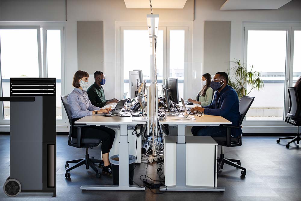 - Hohe Einsatzflexibilität durch Mobilität; einfach dort aufstellen, wo ein hoher Schutz vor luftgetragenen Risiken erforderlich ist