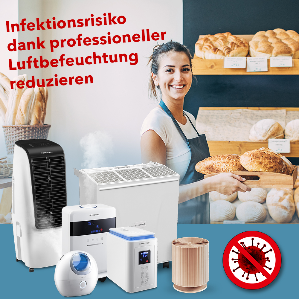 Fachärzte betonen schon seit geraumer Zeit, dass wir das Infektionsrisiko über die Anhebung der Luftfeuchtigkeit in Gebäuden mindern können. So führt die Steigerung der Luftfeuchte durch Befeuchtung auf rund 50 % zu einer Reduktion des Übertragungsrisikos – und genau deshalb sind Luftbefeuchter und Luftkühler an dieser Stelle so wichtig. Denn moderne hygrostatgesteuerte Luftbefeuchter, etwa die B-E- und B-Serie von Trotec, sorgen für eine optimal regulierte Luftfeuchte und gereinigte Raumluft. Und die Luftkühler der PAE-Serie von Trotec befeuchten die Luft nicht nur, sondern bringen jetzt im Sommer erfrischende Verdunstungskühle ins Haus.