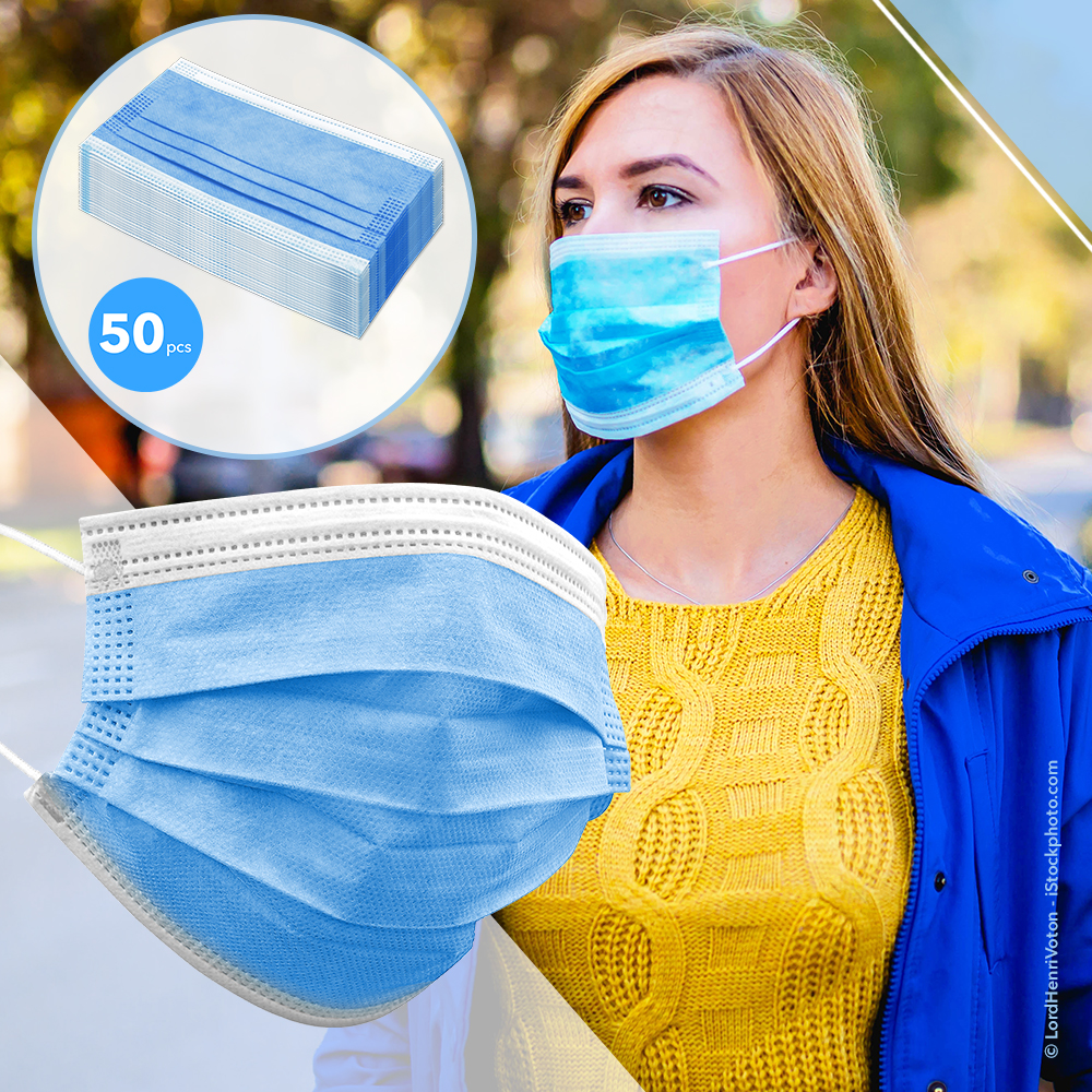 - 3-lagige Mund-Nasen Maske im 50er Pack