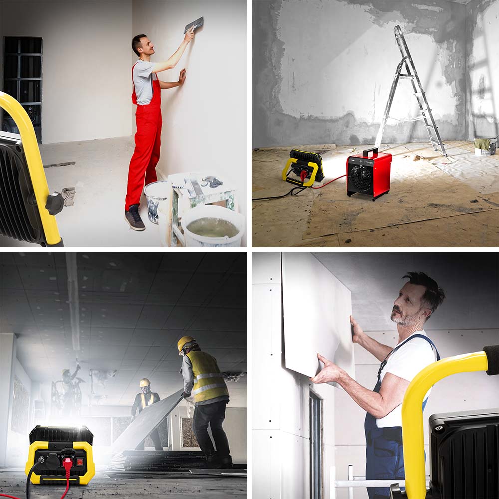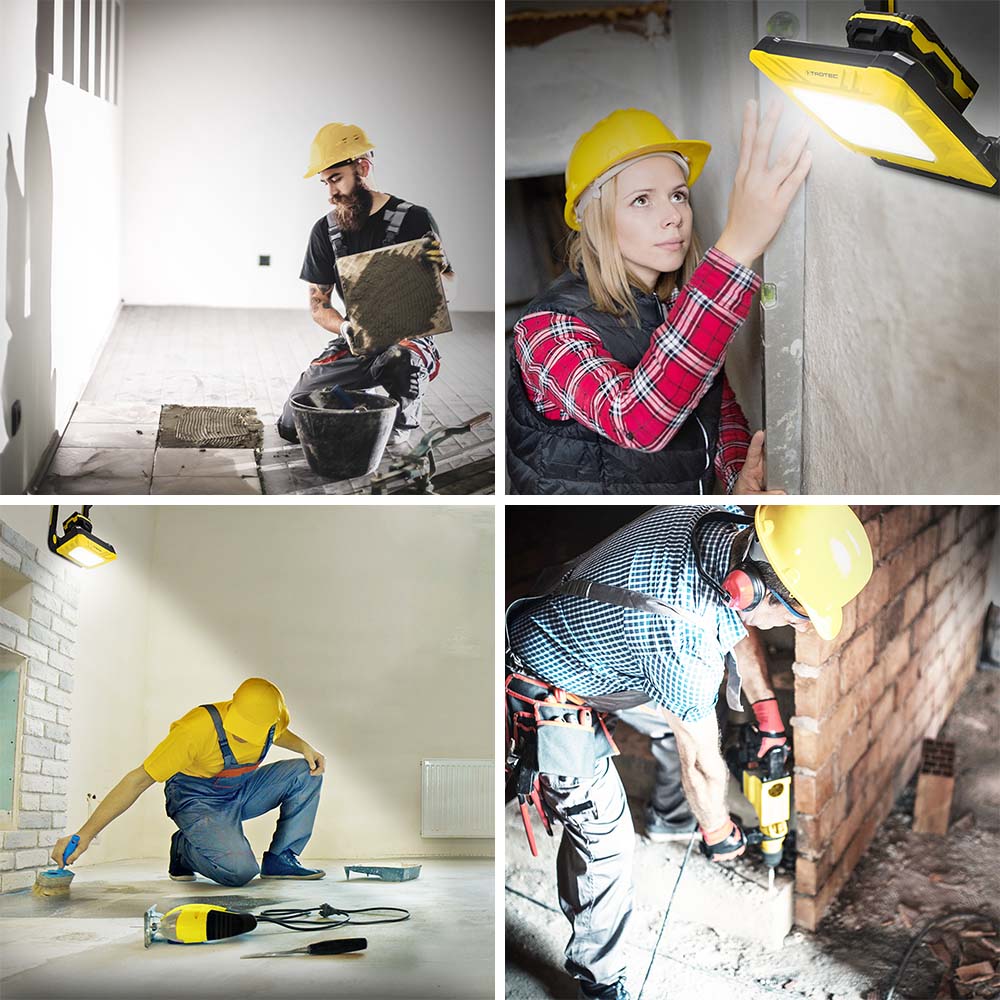 Besonders einfach und mit hoher Lichtstärke gelingt das Ausleuchten dunkler Arbeitsbereiche mit leuchtstarken LED-Baustrahlern und Arbeitsleuchten von Trotec. Die robusten Profistrahler liefern für jede Arbeit extrahelles Licht mit einer Lichtrahl-Leistung bis zu 13.500 Lumen.
