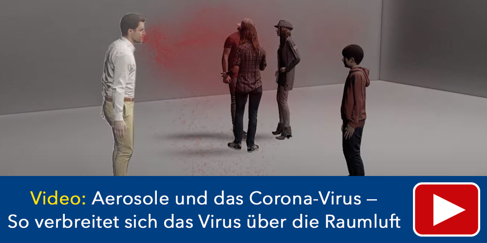 Entscheidend für die Ansteckungsgefahr mit dem SARS-CoV-2-Virus ist die Dauer, wie lange virenbehaftete Aerosole in der Raumluft verbleiben. Im Gegensatz zur Luft im Freien, wo Aerosolegemische durch die Luftbewegung mit sauberer Frischluft verdünnt und verweht werden, bleibt die Aerosolkonzentration in unzureichend belüfteten Innenräumen fortwährend hoch. Ein Aerosol ist ein Gemisch aus Gas (in aller Regel Luft) und festen oder flüssigen Bestandteilen, das bei erkrankten Personen Viren enthält. Diese winzig kleinen Schwebeteilchen werden in der Lunge produziert und vorwiegend beim Atmen wie auch beim Sprechen in den Raum freigesetzt. Während größere Tröpfchen aufgrund ihres Gewichts bereits nach ca. 1,5 Metern zu Boden sinken (daher die Abstandsregel von 1,5 m), schweben die leichten Aerosolteilchen aufgrund ihrer geringen Größe mehrere Stunden in der Raumluft, breiten sich aus und werden selbst viele Meter entfernt unbemerkt eingeatmet.