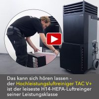 Sogar noch übertroffen werden diese von Prof. Kähler definierten Kriterien vom mobilen Hochleistungsluftreiniger TAC V+.