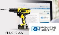 Gerne greifen wir an dieser Stelle die Argumente auf, die „B+B Bauen im Bestand“ selbst für die Auswahl des Akku-Schlagbohrschraubers PHDS 10-20V zur Wahl des B+B PRODUKT DES JAHRES 2018 ins Feld führt – dort heißt es unter der Einführung „Die schlagkräftige Universallösung für praktisch alle Bohr- oder Schraubarbeiten in Haus, Garten und Garage“: