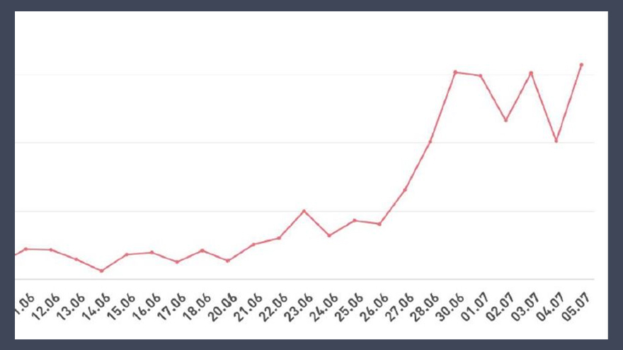 Neuansteckungen mit Corona auf den Balearen in den vergangenen 30 Tagen in absoluten Zahlen- Quelle: MallorcaZeitung