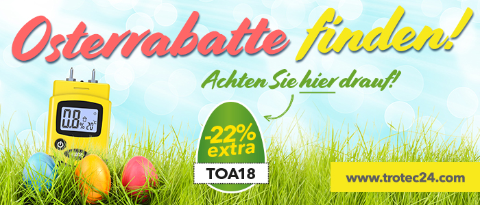 Sie haben noch kein Osterrabatt-Produkt in unserem Online-Shop de.trotec.com/shop gefunden? Hier ein weiterer Tipp: Schauen Sie doch mal in die Kategorie „Feuchtemessgeräte“ rein.