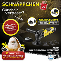 Heute war es soweit: Endlich konnte man die erste Mail im Postfach öffnen. Als erstes Advents-Schnäppchen gab es unser Multifunktionswerkzeug PMTS 10-12V ganze 50 % günstiger mit unserem Rabatt-Code. Doch das war erst der Anfang. Jetzt schnell zum Trotec-Newsletter anmelden und bis Heiligabend noch 23 weitere Kracher-Angebote erhalten!