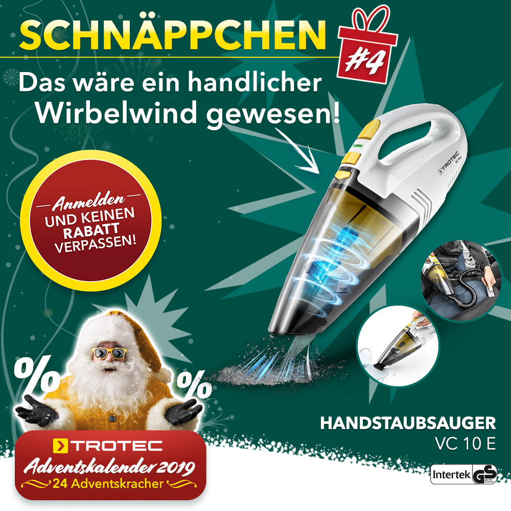 Unser heutiger Adventskracher war das leistungsstarke Multitalent zum Nass- und Trockensaugen, der Akku-Handstaubsauger VC 10 E mit 67 % Rabatt!