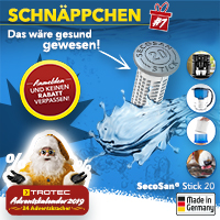 Unser heutiger Adventskracher war der SecoSan Stick 20 – schützen Sie Ihre Wasserqualität, es ist so einfach! Den SecoSan Stick gab es 65 % günstiger mit dem Rabatt-Code aus dem heutigen Newsletter!