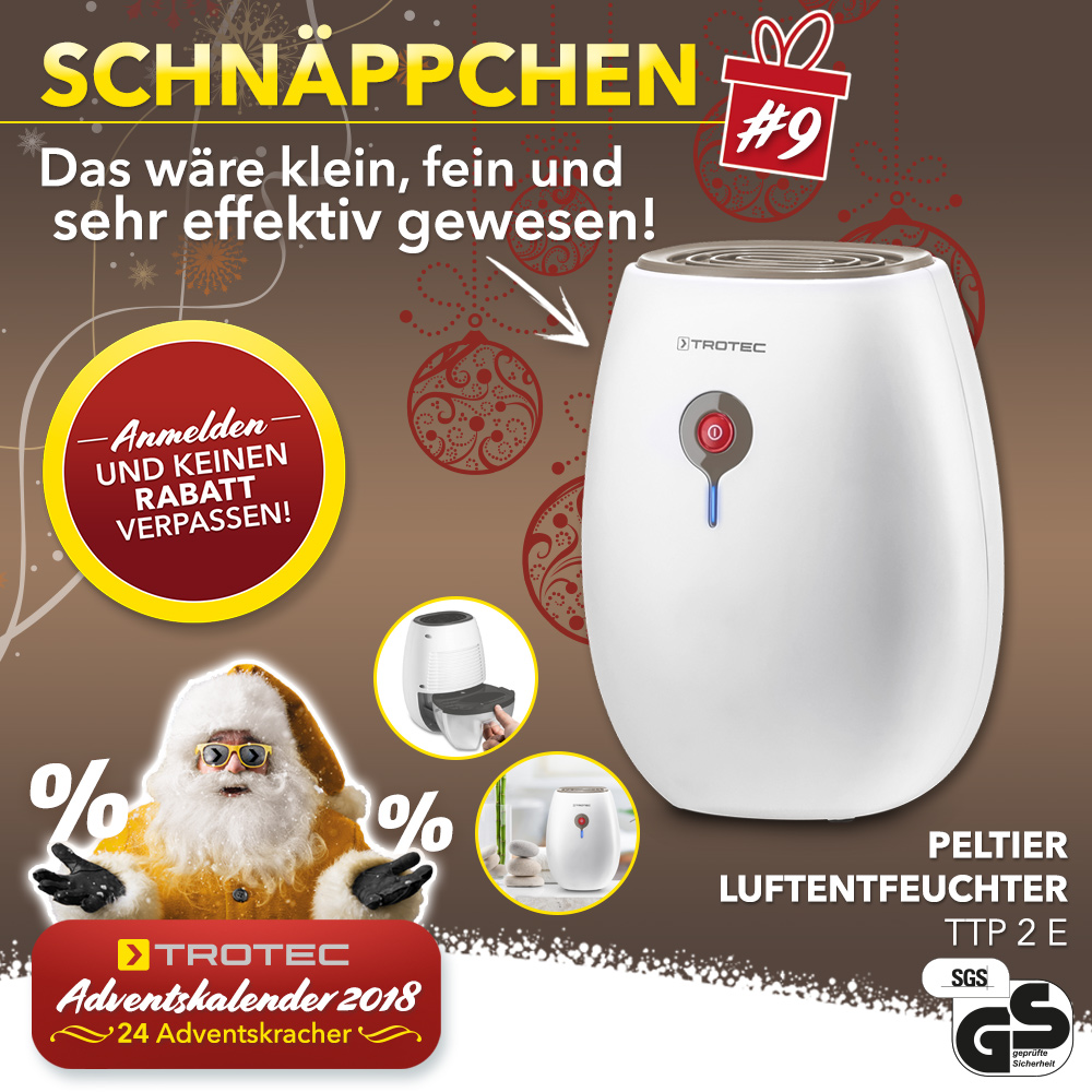 Unser heutiger Adventskracher war der Peltier-Luftentfeuchter TTP 2 E. Die optimale Trockenlösung – in zeitlosem Design!