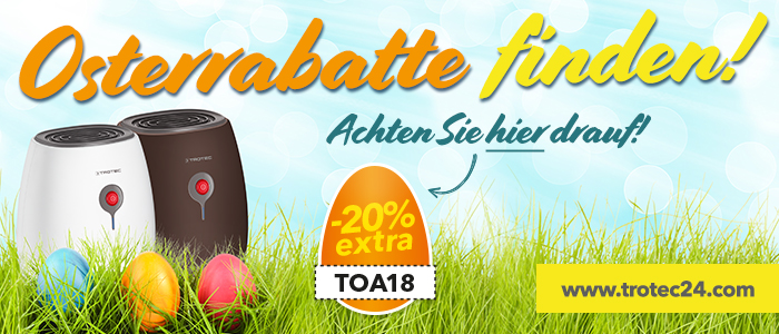 Falls Sie noch nicht alle Osterrabatt-Produkte in unserem Online-Shop de.trotec.com/shop gefunden haben, hier ein weiterer Tipp. Schauen Sie doch mal in die Kategorie „Luftentfeuchter“ rein.