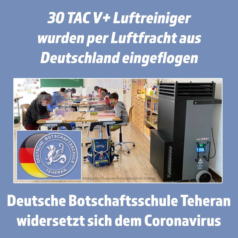 Bei der Bekämpfung der weltweiten Coronapandemie setzt die deutsche Botschaftsschule in Teheran auf die weltweit erprobte TAC Luftreinigungstechnik von Trotec, die zum Schutz der Schüler und Lehrer eigens per Luftfracht aus Deutschland eingeflogen wurde.
