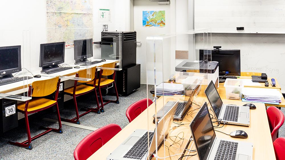 Informieren Sie sich in unserem „Ratgeber für sicheren Schulunterricht“, wie ein sicheres Hygienekonzept für Schulen realisiert werden kann. Der Ratgeber enthält ein „How-to“ für die Umsetzung empfohlener Hygienekonzepte für Schulen, wissenschaftlich belegte Fakten zu den Ansteckungsrisiken im Klassenzimmer sowie technische Lösungen, um das Ansteckungsrisiko im Unterricht auf ein Minimum zu reduzieren.