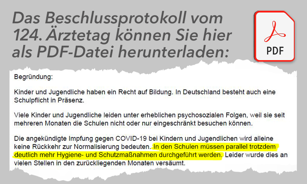 In ihrer Begründung weist die Ärzteschaft darauf hin, dass Kinder und Jugendliche ein Recht auf Bildung haben. In Deutschland bestehe eine Schulpflicht in Präsenz. Viele Kinder und Jugendliche würden bereits unter erheblichen psychosozialen Folgen leiden, weil sie seit mehreren Monaten die Schulen nicht oder nur eingeschränkt besuchen können. Die Ärzte gehen davon aus, dass die angekündigte Impfung gegen COVID-19 bei Kindern und Jugendlichen alleine keine Rückkehr zur Normalisierung bedeuten wird. In den Schulen müssten parallel zur Impfung deutlich mehr Hygiene- und Schutzmaßnahmen durchgeführt werden. Die Experten aus dem Gesundheitswesen kritisieren, dass dies an vielen Stellen in den zurückliegenden Monaten versäumt wurde.