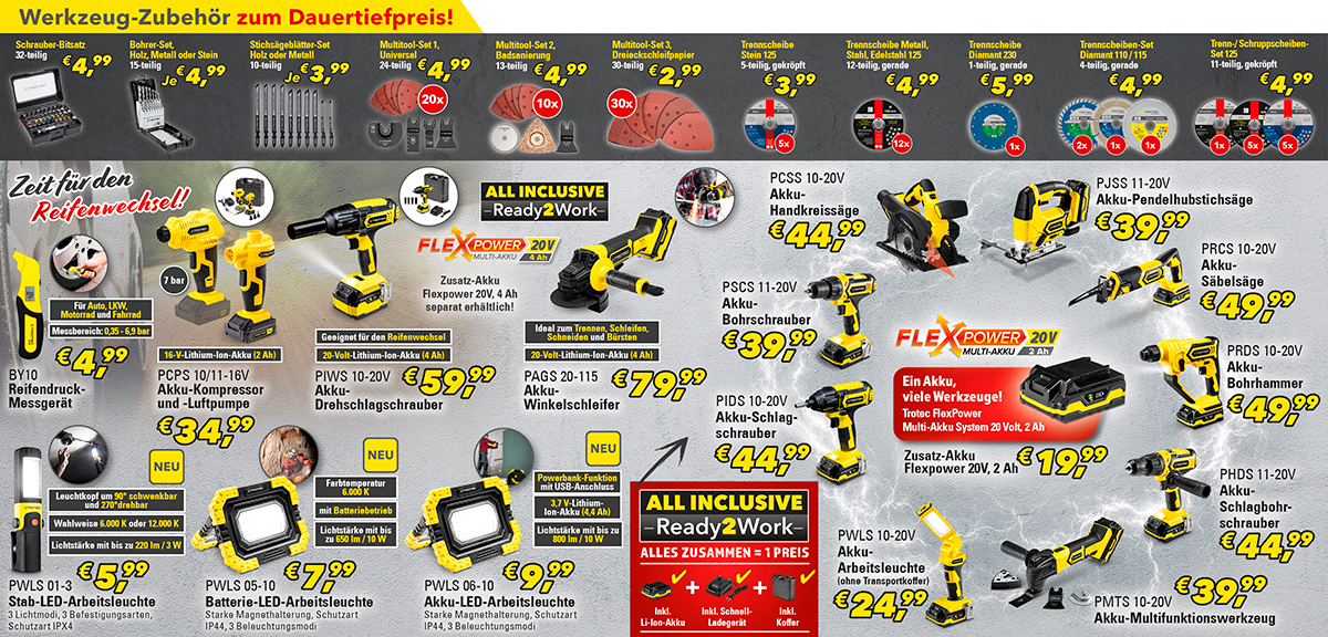 In unserem Powertool-Sortiment gibt es immer etwas neues zu entdecken. Aktuell z. B. die neuen Arbeitslampen. Und auch für den anstehenden Sommerreifenwechsel haben wir kraftvolle Elektrowerkzeuge im Angebot. Ob mit oder ohne Kabel – im Trotec STORE bieten wir Ihnen auch bei Powertools und Werkzeugzubehör das beste Preis-Leistungsverhältnis.
