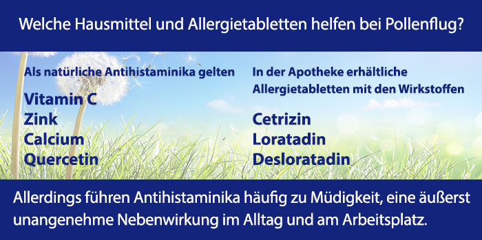 Mehr oder minder wirksame Hausmittel und Allergietabletten, die bei Pollenallergie helfen sollen, gibt es viele: