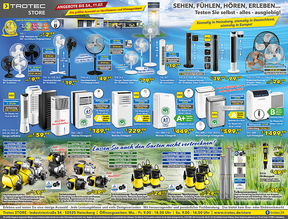 *Die Artikel liegen in begrenzter Menge vor und können daher bereits am ersten Aktionstag ausverkauft sein. Abgabe nur an Endverbraucher in haushaltsüblichen Mengen. Die Aktions-Preise im STORE gelten exklusiv nur für diesen Newsletter bis Sa., 04.07.2020 und sind nur bei Trotec vor Ort in Heinsberg gültig.