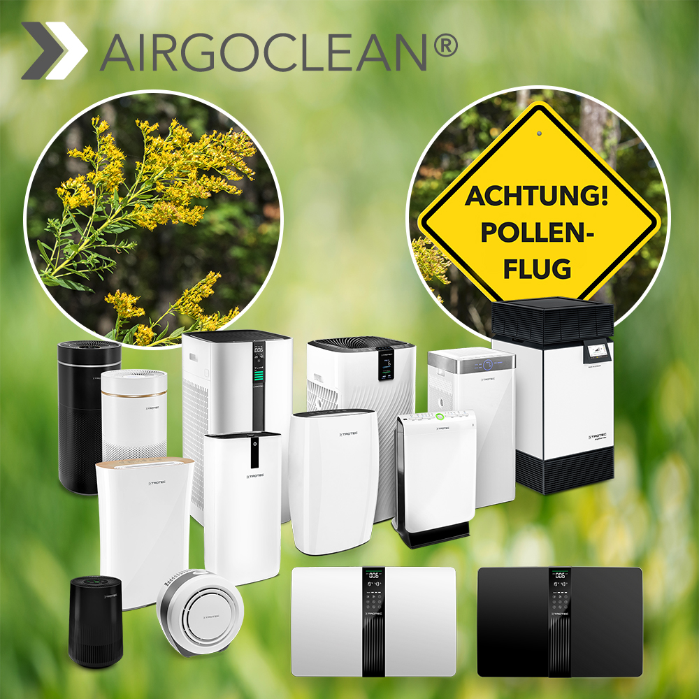 Luftreiniger der AirgoClean®-Serie filtern nicht nur im Frühjahr die Raumluft, wenn vermehrt Blütenstaub in Innenräume gelangt, sondern ganzjährig und erzeugen so ein gesundes Raumklima zum freien Ein- und Durchatmen. Denn für Allergiker und Asthmatiker ist auch die Belastung der Luft mit Schadstoffen und Staub gefährlich. Und nicht erst seit Corona wissen wir, dass Bakterien und Viren überall auftreten: Der Schreibtisch ist beispielsweise mit hundertmal mehr Bakterien besiedelt als eine Küche. In der Grippezeit kann ein Kubikmeter Luft bis zu 15.000 Partikel mit Grippeviren enthalten.