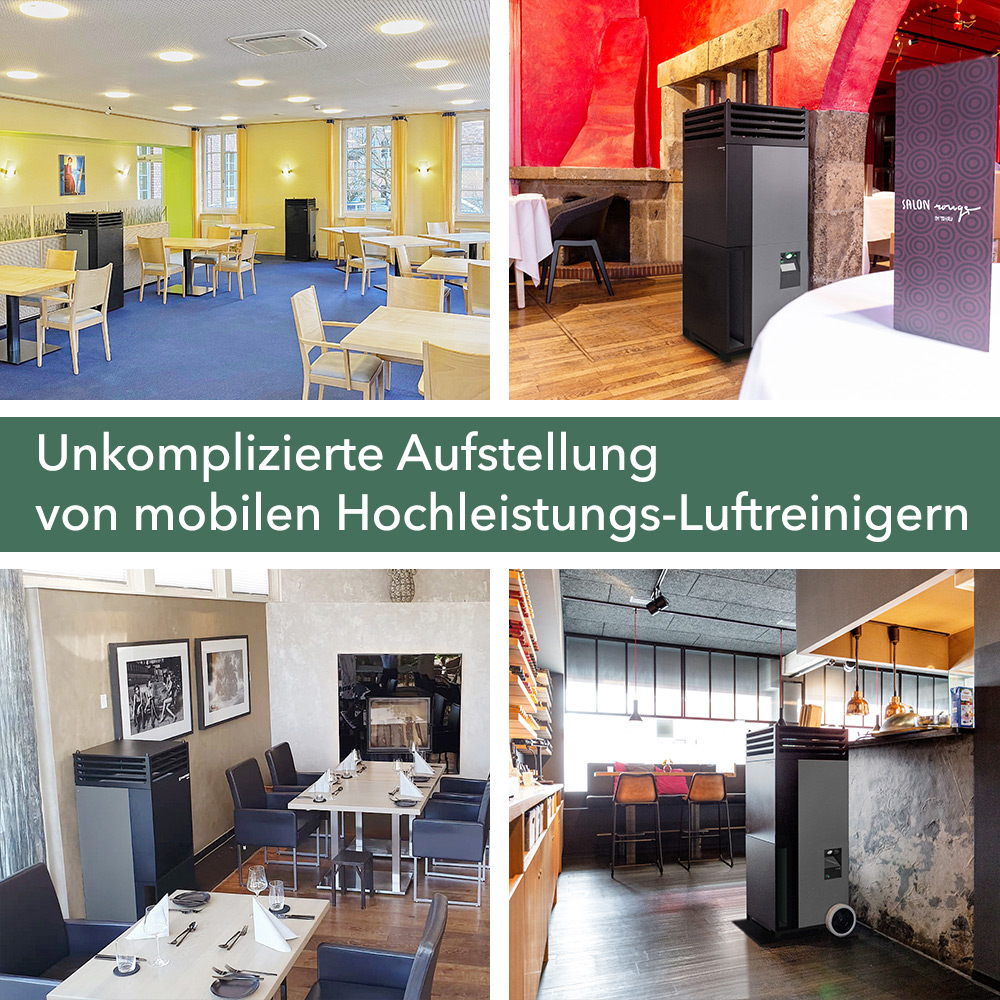 2. Durch Raumluftreinigung mit fest installierten oder mobilen Raumluftreinigern.