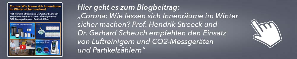 Neben den bekannten Maßnahmen wie Impfungen, Mund-Nasen-Masken, Abstandsregeln und Handdesinfektion brauche es einen zusätzlichen Infektionsschutz insbesondere für Innenräume, um Lockdown-Maßnahmen in der Zukunft zu vermeiden, erläutert Scheuch. In einem gemeinem Video mit dem Virologen Hendrik Streek schlägt der Aerosolexperte einen Präventionscheck für Innenräume vor, der das Infektionsrisiko nach dem aktuellen Stand der Forschung so gut es geht minimiert. Ob Einzelhandel, Gastronomie, Fitnesszentren oder Veranstalter – sie alle suchen derzeit nach einem wirksamen Instrumentarium, damit sich Mitarbeiter und Kunden sicher fühlen und bestmöglich vor Ansteckungen geschützt werden können.