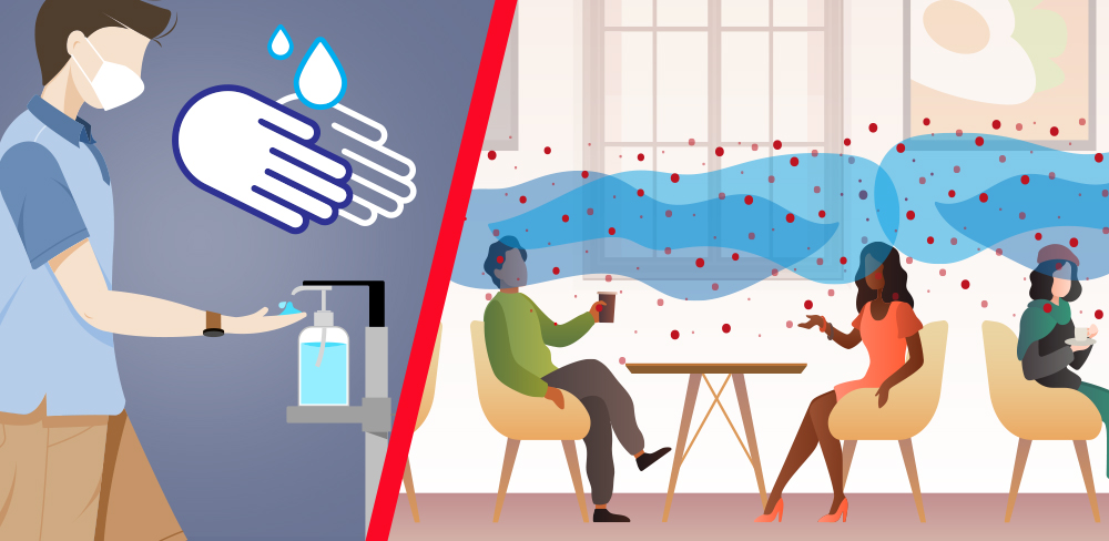 Zahlreiche wissenschaftliche Studien weisen darauf hin, dass sich bereits mit der Atmung und überwiegend beim Sprechen mit dem SARS-CoV-2-Virus behaftete Aerosolpartikel über mehrere Meter hinweg verbreiten und mehrere Stunden infektiös in der Raumluft schweben können.