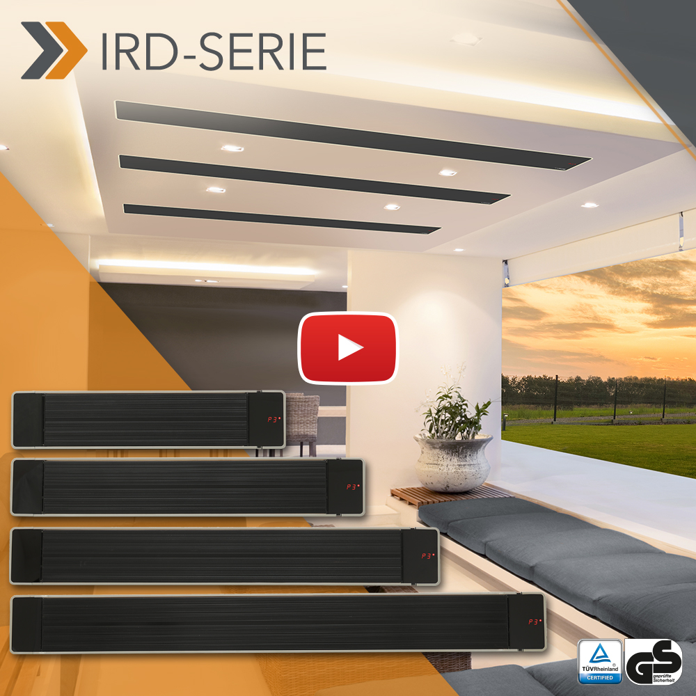 Je nach individueller Anforderung verfügen die einzelnen Geräte der IRD-Serie über eine unterschiedliche Heizleistung von 1200, 1800, 2400 oder 3200 Watt – mit jeweils 3 Heizstufen. Darüber hinaus sind die Heizstrahler natürlich noch mit weiteren Komfortfunktionen ausgestattet – unser neues Produktvideo zeigt, welche das im Einzelnen sind …