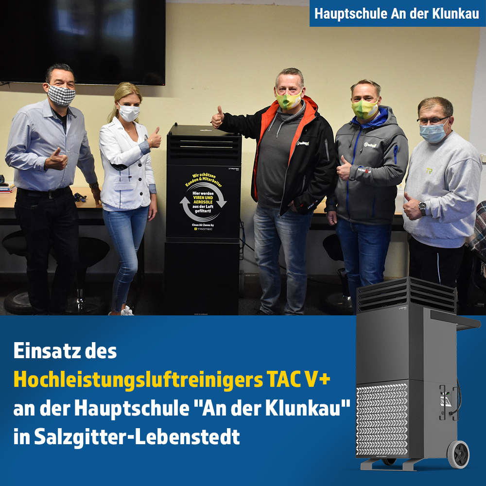 Über verschiedene Medienberichten zur Wirksamkeit von Luftreinigern im Kampf gegen das Coronavirus ist Andre Ourmard, Lehrer an der Hauptschule „An der Klunkau“ in Salzgitter-Lebenstedt, auf den TAC V+ Hochleistungsluftreiniger von Trotec aufmerksam geworden. Berichtet wurde über eine Wirksamkeitsstudie des Universitätsprofessors Christian Kähler der Universität der Bundeswehr München, wonach das Ansteckungsrisiko in Schulen durch den Einsatz dieses Luftreinigers erheblich reduziert werden könne.