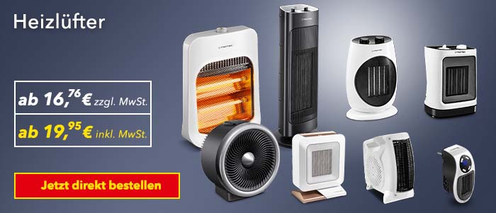Elektrische Heizlüfter wie die Keramik-Heizlüfter der TFC-Serie und die tragbaren Heizlüfter der TFH-Serie zählen zu den beliebtesten Schnellheizern. Die verwendete Heiztechnik ist unkompliziert, der Einstieg mit Preisen ab rund 20 Euro günstig und die Heizleistung mit bis zu 2.200 Watt absolut ausreichend, um einzelne Räume schnell und einfach auf angenehme Raumtemperaturen zu erwärmen.