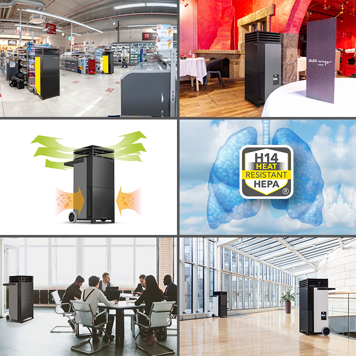 - Hohe Einsatzflexibilität durch Mobilität; einfach dort aufstellen, wo ein hoher Schutz vor luftgetragenen Risiken erforderlich ist