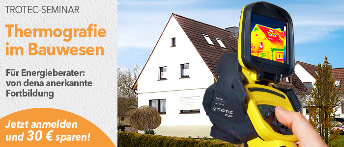 Das eintägige Seminar Thermografie im Bauwesen kann wahlweise in den Trotec-Schulungscentern in Heinsberg, Kufstein, Straßburg, Schwerin und an der Handwerkskammer Potsdam in Götz besucht werden.
