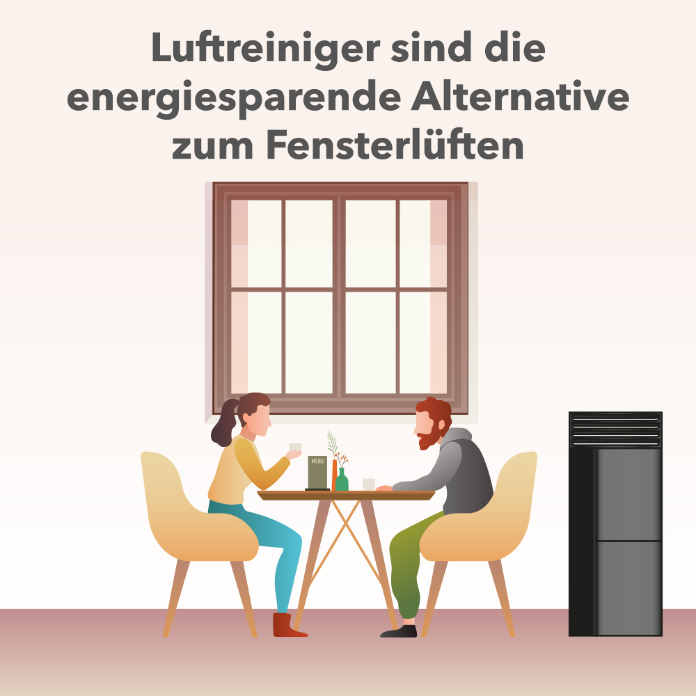 Beim Einsatz von mobilen Luftreinigern kühlen Innenräume weniger aus, da die Lüftungszeiten spürbar verringert und Lüftungsintervalle deutlich verlängert werden. Oder anders ausgedrückt: Es kann wieder so gelüftet werden, wie man es noch von der Vor-Corona-Zeit kennt. So lassen sich stark steigende Heizkosten abfedern, die beim Lüften ohne Luftreinigung unweigerlich die Folge sind.