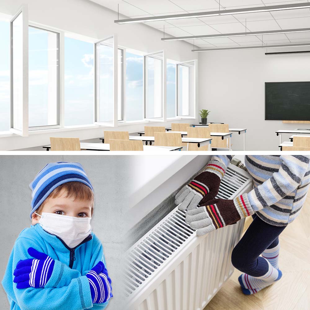Bereits in den vergangenen zwei Wintern mussten viele Schüler im Unterricht frieren, weil die Klassenräume durch regelmäßiges Lüften mit weit geöffneten Fenstern in kürzester Zeit auskühlten. Raumtemperaturen weit unter 19 Grad Celsius waren keine Seltenheit. „Zwar funktioniert der Luftaustausch beim Lüften im Winter sehr gut, jedoch muss die kalte Außenluft dann mit viel Heizenergie wieder auf die Innentemperatur erwärmt werden. Je kälter es draußen ist umso mehr Energie wird dafür benötigt.“, so Weingartz.