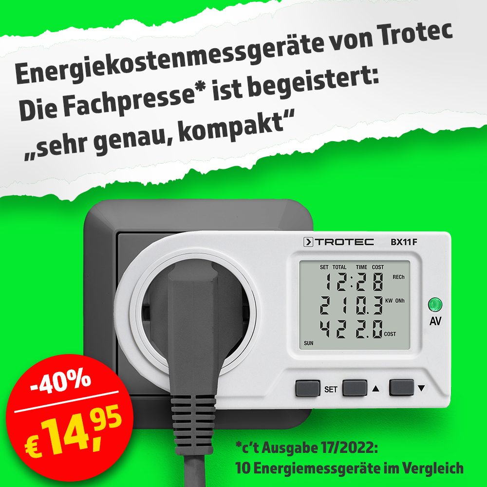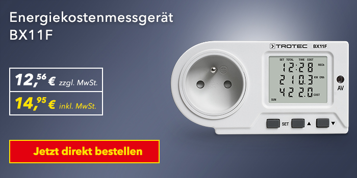 Also bleibt nur Stromsparen! Um den Stromverbrauch kritisch unter die Lupe zu nehmen und zukünftig teuren Strom einzusparen, hat sich Castenholz das Energiekostenmessgerät BX11F von Trotec zugelegt. Damit lassen sich im Handumdrehen Geräte ausfindig machen, die selbst im Standby-Modus noch viel Strom verbrauchen.