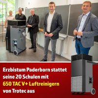 Pünktlich zum Schulstart nach den Sommerferien hat das Erzbistum Paderborn seine Schulen mit insgesamt 650 mobilen und leistungsstarken TAC V+ Hochleistungsluftreinigern von Trotec ausgestattet. Damit soll der Präsenzunterricht in den insgesamt 20 Schulen in Trägerschaft des Erzbistums trotz erhöhtem Corona-Infektionsrisiko gestärkt werden. Zwei Millionen Euro wurden zum Schutz der Schüler und des Lehrpersonals investiert.