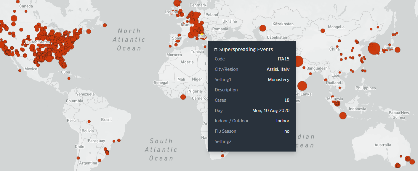 In der Datenbank der London School of Hygiene & Tropical Medicine erfasste Superspreader-Events.
