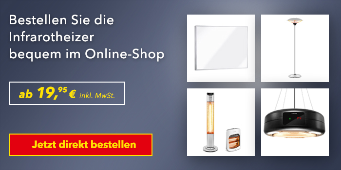 Noch schnellere Wärme auf der Haut erzeugen moderne Trotec-Infrarotstrahler und das besonders effizient. Während Elektroheizer zuerst die Luft erwärmen müssen, damit die Wärme auf die Haut gelangt, erwärmen die als Deckenstrahler, Wandstrahler, und Standgeräte erhältlichen Infrarotstrahler und Infrarot-Heizplatten die Haut und Objekte im Raum direkt – ohne Umweg über die Luft. Die Wärme entwickelt sich unmittelbar, nachdem Sie den Infrarotstrahler eingeschaltet haben. Strahler mit Infrarottechnik sind flexibel und universell einsetzbar. Als Allround-Heizgerät können Sie Infrarotstrahler überall verwenden, sie eignen sich je nach Bauweise für den Innen- und Außenbereich. Wenn Sie einen modernen Infrarotstrahler nutzen, werden Sie die schnelle Wärmequelle bald nicht mehr vermissen wollen und dabei bares Geld sparen.