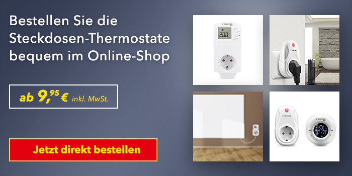 Mit digitalen Steckdosen- oder auch Funk-Thermostaten regulieren Sie bequem und einfach die Raumtemperatur, indem sich das am Thermostat angeschlossene Heizgerät nur dann ein- bzw. ausgeschaltet, wenn die gemessene Raumtemperatur von der im Thermostat eingestellten Zieltemperatur abweicht. So beheizen Sie den Raum immer nur dann, wenn ein Nachheizen erforderlich ist und auch nur so lange, bis die Wohlfühltemperatur erreicht wird. Viele Trotec-Heizgeräte haben diese vorteilhafte Thermostatsteuerung bereits eingebaut. Für Geräte ohne eingebaute Thermostatsteuerung empfehlen sich die preisgünstigen Trotec Raumthermostate – erhältlich als Steckdosenthermostat BN30 und Funkthermostat BN35.