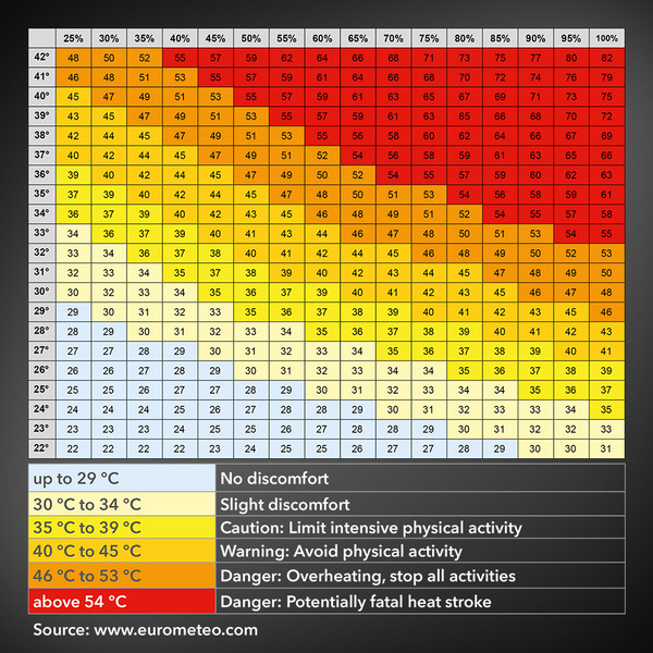 Ursächlich für den erheblichen Unterschied zwischen echter und gefühlter Temperatur ist eine besonders hohe Luftfeuchtigkeit, die die Fähigkeit des Körpers einschränkt, sich durch Schwitzen abzukühlen. Insbesondere sportlich aktive, kranke und ältere Menschen sollten daher an heißen Tagen nicht nur die Temperatur im Blick behalten, sondern ebenso die Luftfeuchtigkeit, um den Körper vor einer Überhitzung zu schützen.