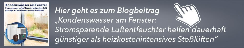 Übersteigt die Luftfeuchtigkeit selbst nach intensivem Lüften regelmäßig den Wert von 60 – 65 Prozent, kann dies auf eine mangelhafte Dämmung der Außenwände oder Fenster hindeuten. In diesem Fall hilft das Aufstellen eines mobilen Luftentfeuchters, um der Raumluft auf technischem Wege die Feuchtigkeit zu entziehen.