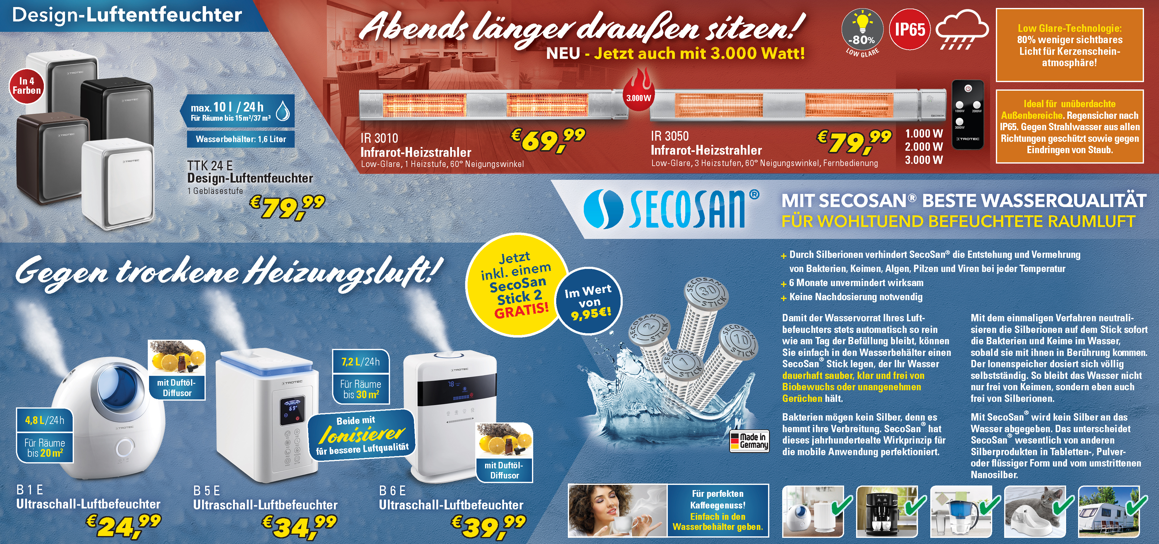 *Die Artikel liegen in begrenzter Menge vor und können daher bereits am ersten Aktionstag ausverkauft sein. Abgabe nur an Endverbraucher in haushaltsüblichen Mengen. Die Aktions-Preise sind exklusiv nur bis Sa., 02.11. bei Trotec vor Ort in Heinsberg gültig. Alle Preise inkl. MwSt. Für Schreibfehler keine Haftung.