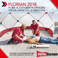 Die FLORIAN 2018 findet vom 11. bis 13. Oktober 2018 wieder in Dresden statt und richtet sich an die Entscheidungsträger aus Feuerwehr, Zivil- und Katastrophenschutz, das Rettungswesen und deren Mitarbeiter und Einsatzkräfte. Rund 220 Aussteller stellen Technologien der Zukunft vor. Parallel bietet FLORIAN ein umfangreiches Vortragsprogramm für alle Angehörigen von Feuerwehr, THW und Rettungsdiensten sowie für kommunale Entscheider.