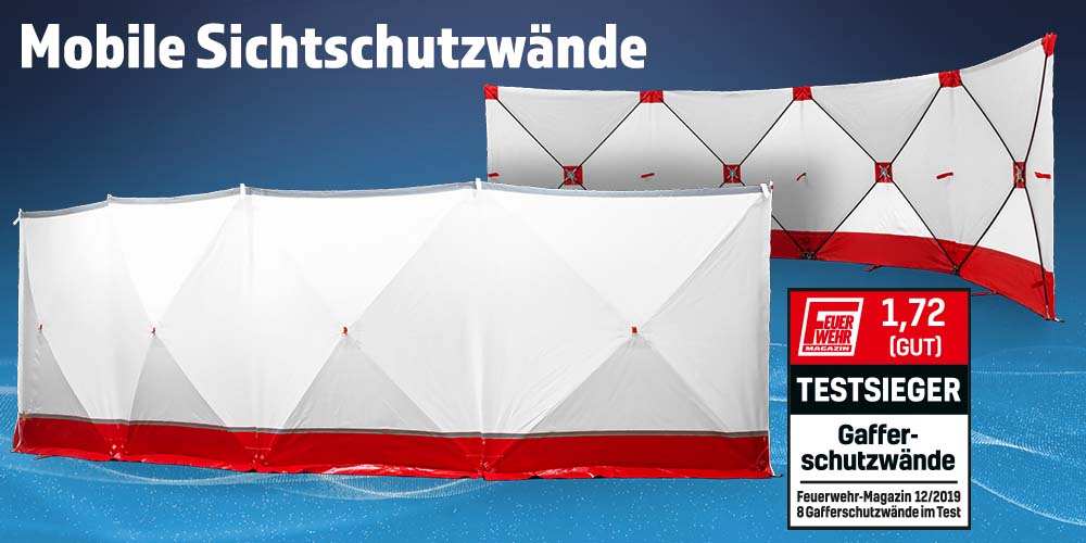 Mobiler Sichtschutz für Retter und Einsatzkräfte. Gaffer behindern die Einsatzmaßnahmen oftmals erheblich. Mit den VarioScreen-Sichtschutzwänden von Trotec schützen Sie die Opfer vor einer unnötigen Zurschaustellung und sorgen gleichzeitig dafür, dass sich Ihr Team abgeschirmt und voll konzentriert um seine Aufgaben kümmern kann. Die hochqualitativen Anti-Gaffer-Wände lassen sich innerhalb von Sekunden aufbauen und stabil befestigen. Darüber hinaus können sie mit Reißverschlüssen beliebig verlängert werden.