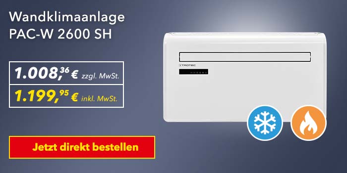 Moderne Klimaanlagen wie die PAC-Wandklimageräte PAC-W 2600 SH und PAC-W 2650 SH ohne Außengeräte sind wahre Multitalente. An heißen Sommertagen, wenn die Temperaturen im Freien schier unerträglich werden, verhelfen die optisch herausragenden Klimageräte für die Wand oder Decke zu schneller Abkühlung. Doch das ist bei weitem noch nicht alles. Wenn Sie eines der beiden PAC-Klimageräte zum Kühlen des Wohnraums oder des Büros einsetzen, dann schöpfen Sie lediglich 25 % des möglichen Potentials aus. Denn: Ebenso effektiv und leistungsstark lassen sich Räume mit den 4-in-1 Klimageräten lüften, entfeuchten und sogar beheizen.