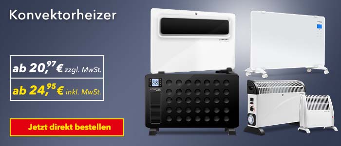 Mobile Konvektorheizer sind handlich, praktisch und wahre Schnellheizgeräte. Die kompakten Heizgeräte sind bei Trotec mit Leistungswerten von 450 Watt bis 2.500 Watt zum Preis ab 24,95 Euro erhältlich.
