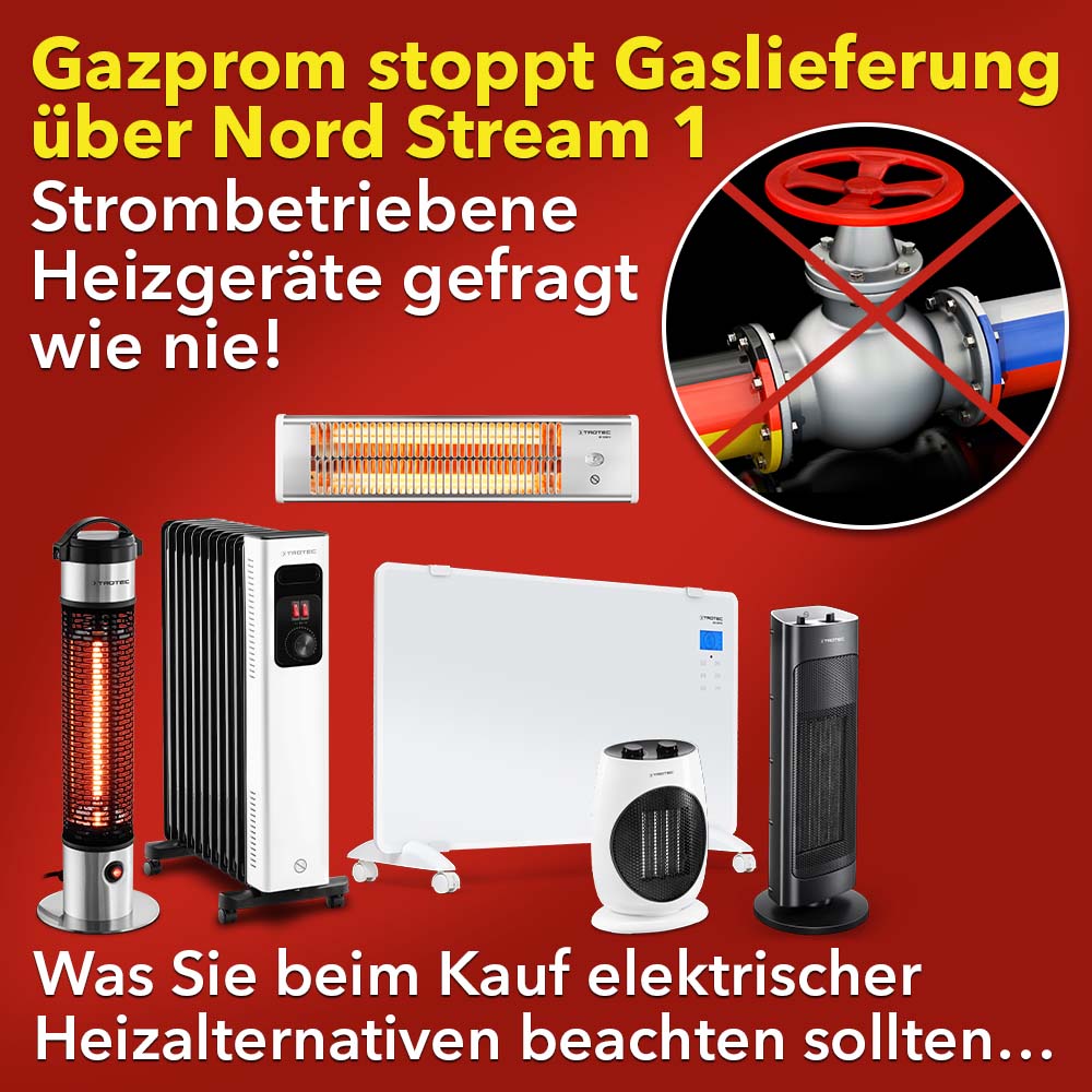 Die zunehmende Drosselung der Gas-Liefermengen aus Russland beunruhigt Bürger und Unternehmen, die auf Gas zum Heizen oder zum Herstellen von Waren und Produkten angewiesen sind. Obgleich das Bundeswirtschaftsministerium nicht müde wird zu betonen, dass die Gasversorgung in Deutschland gesichert sei. „Die Lage auf dem Gasmarkt ist angespannt, aber die Versorgungssicherheit ist gewährleistet“, heißt es aus dem Ministerium. So ganz glauben möchte das nicht jeder Gaskunde, daher sind elektrische Heizalternativen für den Herbst/Winter derzeit gefragt wie nie zuvor im Sommer.