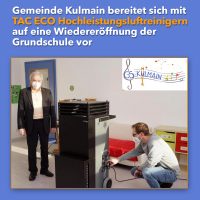 Bereits jetzt hat die Gemeinde Kulmain vorgesorgt, um nach der Rückkehr in die Klassenräume einen sicheren Distanzunterricht zu ermöglichen. Drei TAC ECO Hochleistungsluftreiniger und fünf CO2-Ampeln wurden nach einem einstimmigen Gemeinderatsbeschluss angeschafft, um Lehrpersonal und Kinder nach ihrer Rückkehr in die Klassenräume vor einer Ansteckung mit dem Coronavirus SARS-CoV-2 zu schützen.