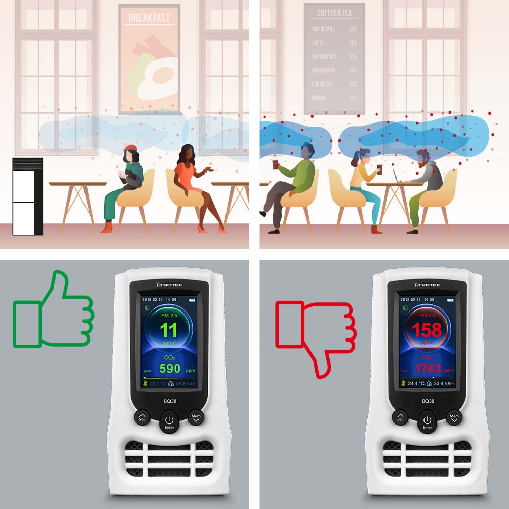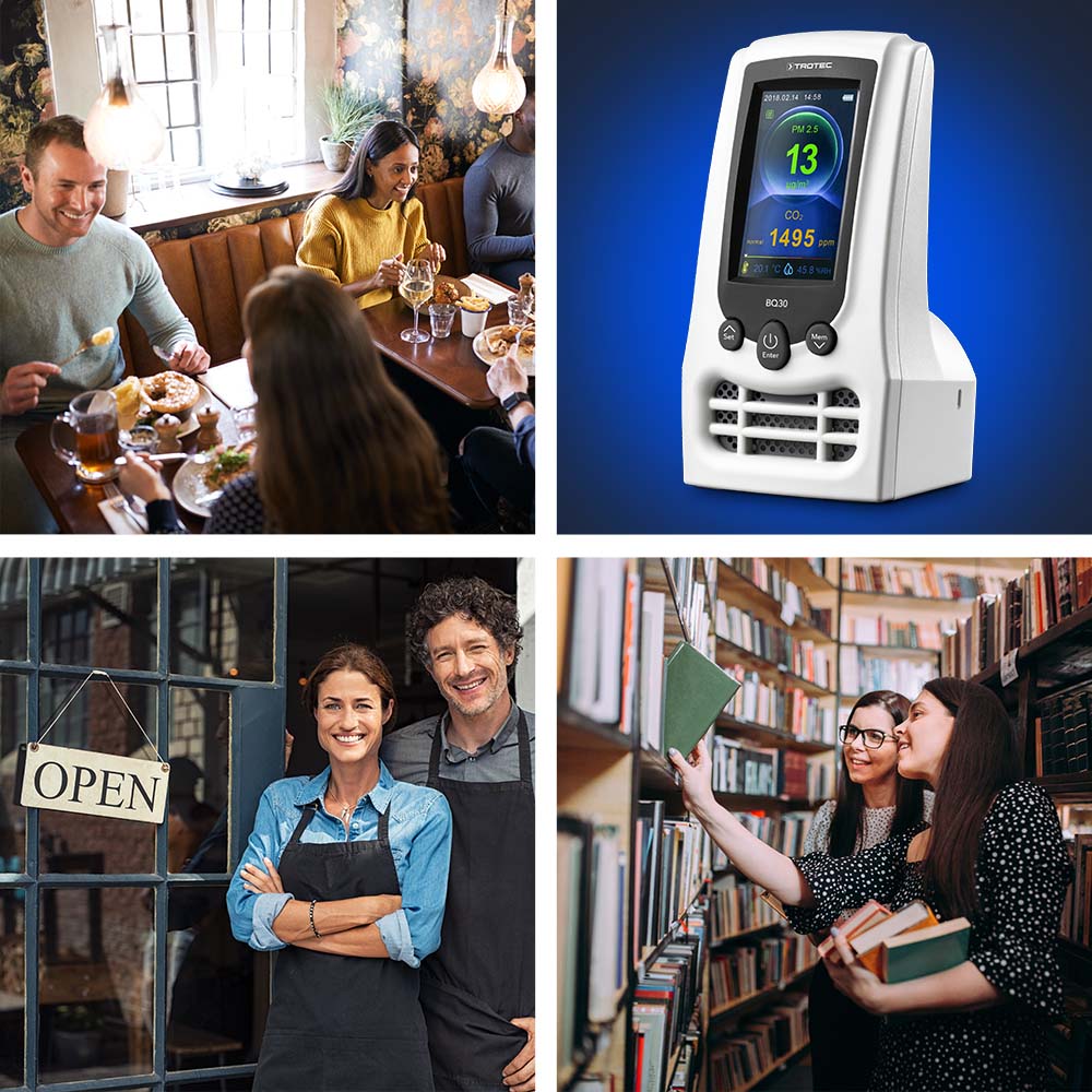 Zukunftsmusik in Deutschland? Keineswegs! Mit dem praktischen Luftqualitätsmonitor BQ30 von Trotec können auch Sie Ihren Kunden oder Gästen ein gutes Gefühl beim Besuch Ihrer Geschäftsräume vermitteln. Vor allem dann, wenn Sie mit einem TAC- Hochleistungsluftreiniger oder einem Airgoclean-Luftreiniger für hygienisch einwandfreie Raumluft sorgen.