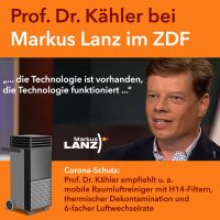 Beim Talk mit Markus Lanz geben sich aktuell Virologen und Wissenschaftler die Klinke in die Hand. Natürlich ist Corona das beherrschende Thema. Auch in der gestrigen Sendung berichteten Experten wie Prof. Dr. Kähler, wie sich das Corona-Ansteckungsrisiko in schlecht belüfteten Räumen durch den Einsatz des Luftreinigers TAC V+ von Trotec reduzieren lässt.