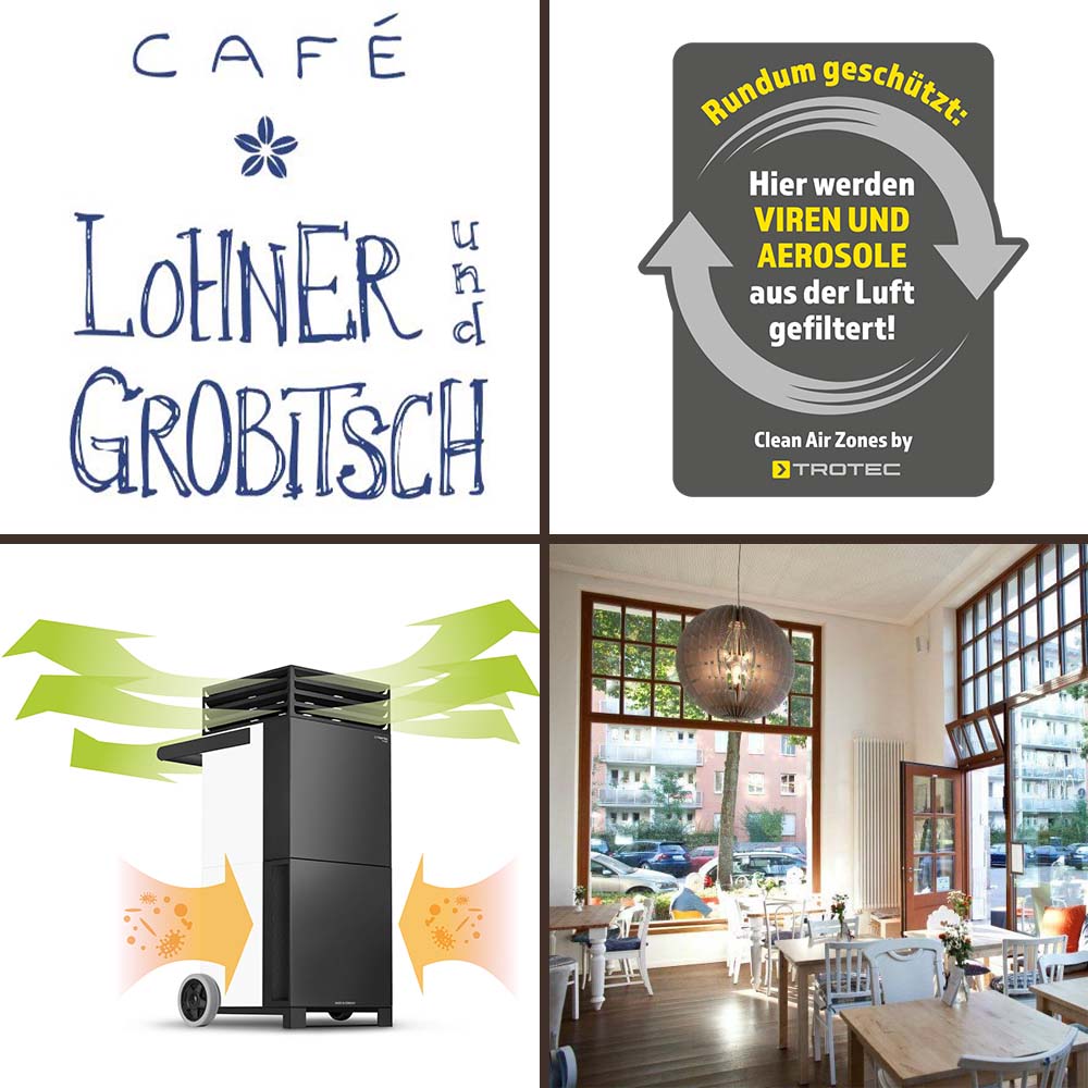 Um ihren Mitarbeitern und Gästen den höchsten Schutz und einen unbeschwerten Aufenthalt im Café zu ermöglichen, setzt Kerstin Lohner auf wirksame Lufthygiene in den Innenräumen ihres Cafés. Während der Geschäftszeiten reinigt ein TAC Hochleistungs-Luftreiniger von Trotec die Raumluft. Infektiöse SARS-CoV-2- und Grippeviren, Feinstaubpartikel aber auch Pollen und Allergene werden mit einer Wirksamkeit von 99,995 Prozent aus der Raumluft gefiltert.